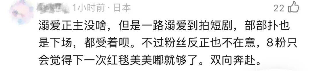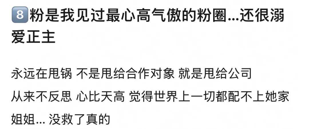 眼瞅着质疑声一浪高过一浪,扣上的帽子也越来越狠,什么“没剧粉盘”、“打不过95花”、“唯一无女主爆剧的女顶流”......各种声音都冒了出来,一波接一波根本停不下来。
