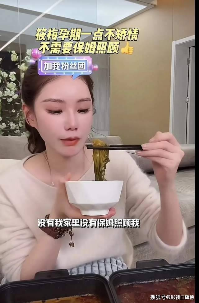 有网友问:孕期有保姆照顾你吗?马筱梅说:我们家没有保姆照顾我,我都几岁了,我不需要保姆。我们家就白天有阿姨来3个小时打扫一下卫生,有时候钟点工炒两个青菜,中午吃不完,我就晚上接着吃,有时候点外卖。相比起有些女性怀孕了日子过得女王似的,恃宠而骄要有专人为她做饭,自己什么都不用干。马筱梅的生活跟普通人没有区别,节俭,不铺张浪费,有一种自食其力的感觉。