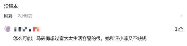 有网友表示:没资本。有网友回怼说:她和汪小菲都不缺钱。