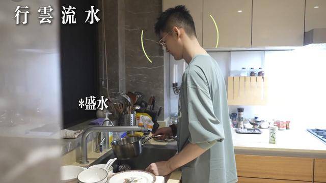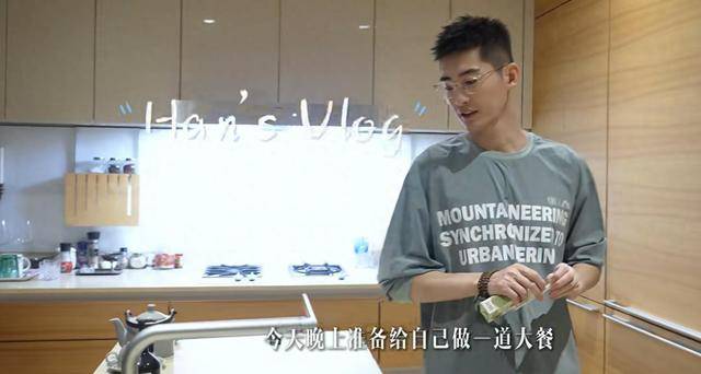 视频中张翰戴着围裙,头发还特意抓了个精致侧分,站在北京自家大平层厨房里忙活。