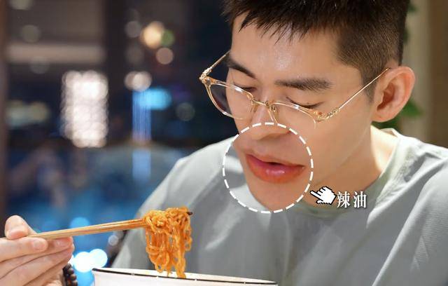 煮好后他大口扒拉这火鸡面,刚开始还能接受辣度,多吃两口就辣得直哈气,嘴唇瞬间红肿起来。