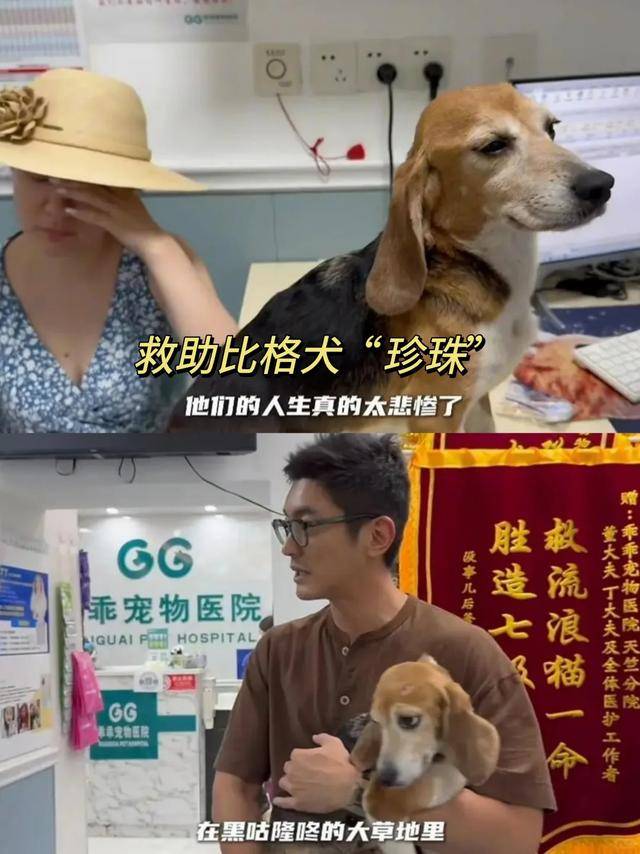 这只比格犬被发现时耳朵有编号,B超显示没有脾脏,医生说它可能是退役的实验犬。