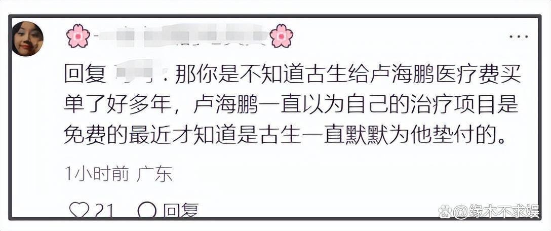 据悉,古天乐不止帮助了海俊杰一个人,而且还帮卢海鹏悄悄付了医疗费。2020年,卢海鹏接受古天乐资助完成心脏血管支架手术。早年卢海鹏一直以为自己的治疗项目是免费的,却不知道是古天乐在默默为他垫付。