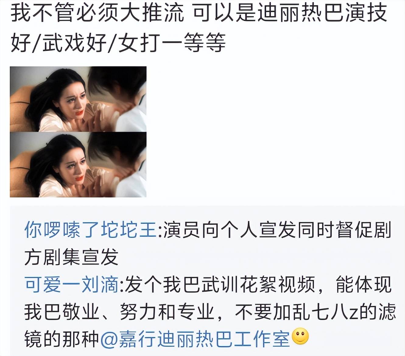 实则迪丽热巴方并不是毫无宣发,也上了多个没营养的热搜,又被不少粉丝嫌弃剧的热搜太多,让工作室管管热搜,爱惜羽毛。