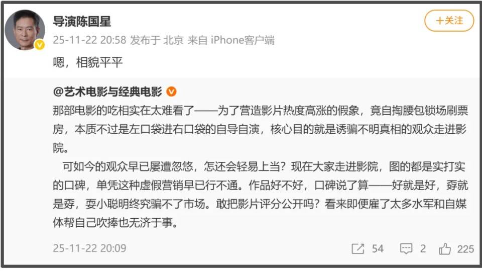 可是电影一上映,全网铺天盖地都是差评,退票率高到上了热搜,之前靠粉丝营造的虚假繁荣崩塌了,连业内导演都下场讽刺。