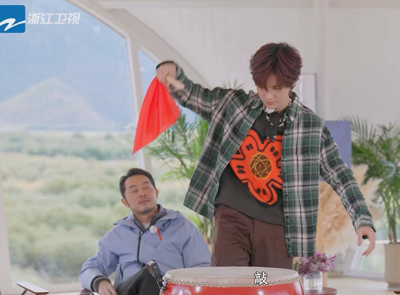 这期节目有一个游戏是“节奏卡点敲鼓”。