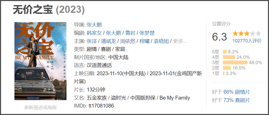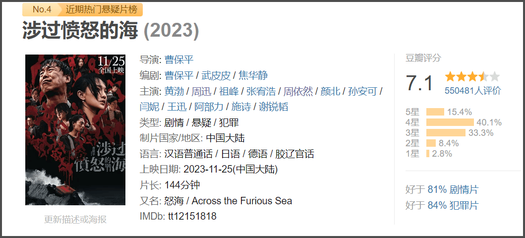 除了电视剧资源很顶之外,周依然的电影资源也很硬,曾出演大导曹保平电影《涉过愤怒的海》的女二号,还演过张译主演电影《无价之宝》的女一号。