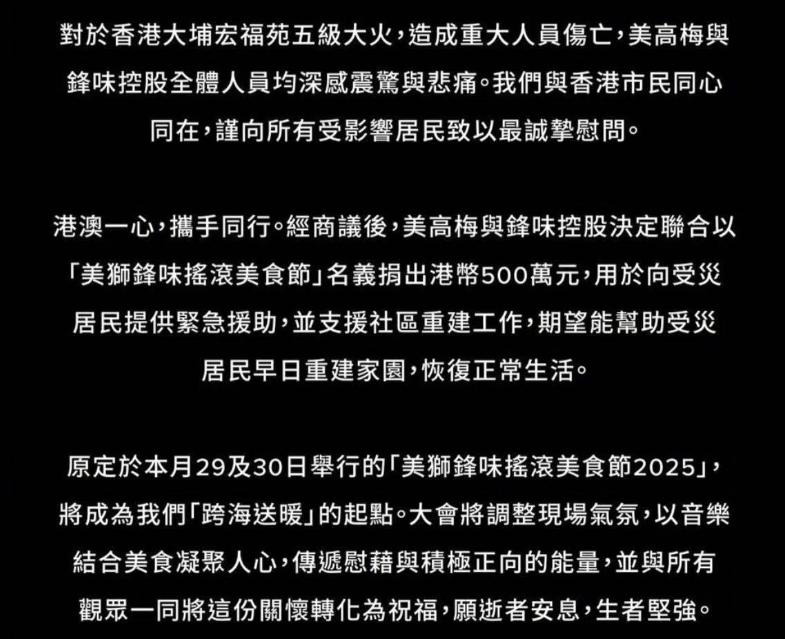火灾发生后,娱乐圈多个活动或取消或延期,除了由韩国电视台主办的MAMA盛典,2025年MAMA盛典落地中国香港,连续两天都要举办活动,动员人次超10万,一旦取消影响极大,但毫无顾忌照常举办,实在太过冷漠了,只会惹出更大争议。