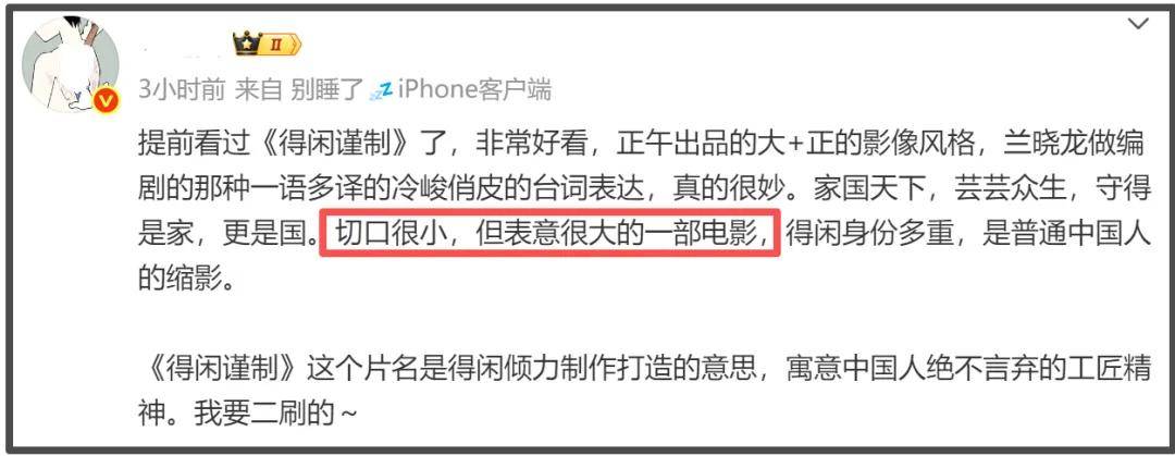 影片虽然还没有上映,但是却已经有小波口碑出炉。在影片定档之前,已经有业内人士受邀参加内部看片会,提前看到了影片。如今,影片官宣定档,受邀业内人士也纷纷发布影评,从大家反馈的评价中不难看出业内人士对《得闲谨制》一片的认可和看好。