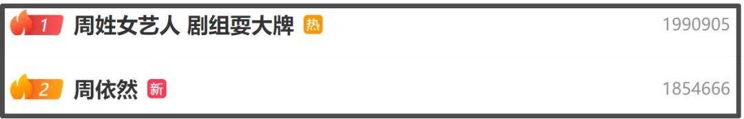 舆论很快发酵,“周姓女艺人剧组耍大牌”和“周依然”两个话题相继登上热搜,占据热搜榜第一名和第二名。本来周依然就曾被质疑是资源咖,现在又和耍大牌扯上关系,口碑毫无意外地崩塌。