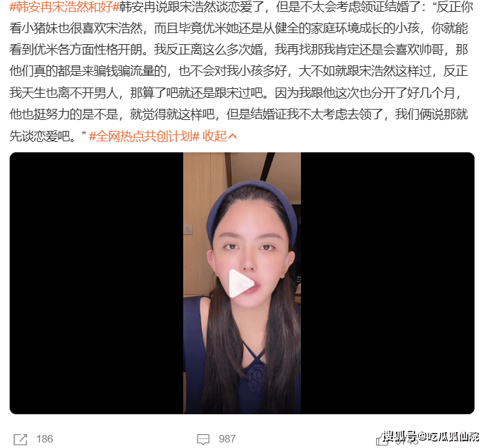对于 “不领证” 的声明,网友犀利吐槽:“这哪里是想好好谈恋爱,分明是怕下次离婚分财产麻烦!” 要知道,韩安冉作为头部网红,积累了不少财富,此前几次离婚都涉及财产分割争议,这次 “只恋爱不领证”,既可以享受感情带来的流量,又能避免财产纠纷,堪称 “稳赚不赔”。