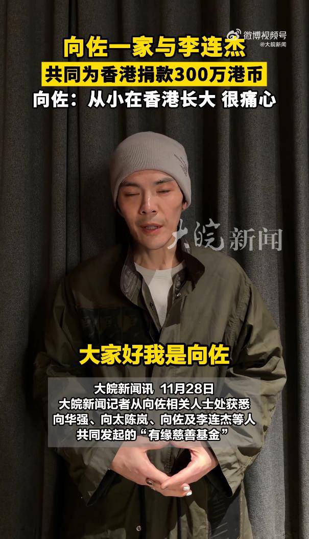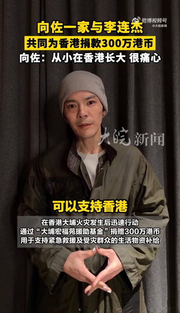 与以往星光熠熠的形象不同,这次出现在镜头前的向佐几乎全素颜,情绪沉重。谈及火灾现场,他数次哽咽到中断发言,直言:“我从小在香港长大,看到现场很痛心。”他表示,在得知灾情后,与父母及师父李连杰共同商议,决定以捐款方式“尽绵薄之力”。