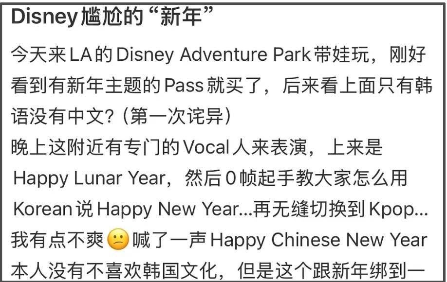 有网友在春节期间去了位于美国加州的乐园,遇到亚洲面孔的人表演K-pop,零帧起手教人用韩文说“Happy New Year”,典型的偷文化行为
