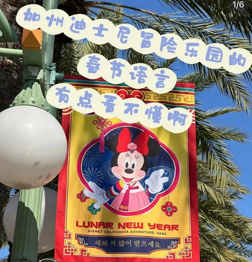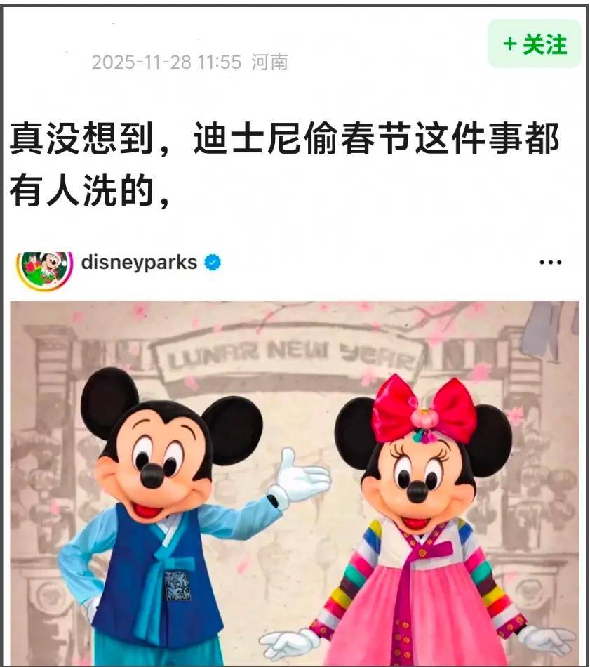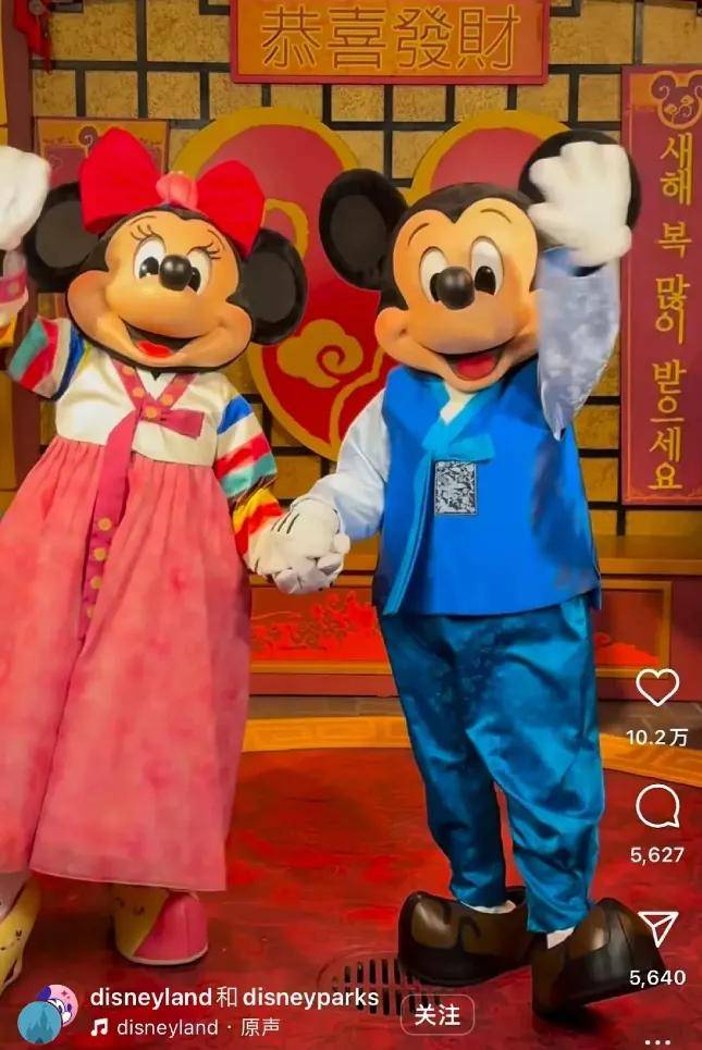 原来早在蛇年开头,某迪就帮着韩国偷我们的春节了,他们让米老鼠和米妮穿上韩服宣传春节,背景还挂着写着汉字“恭喜发财”的春联横批,绝口不提“Chinese New Year”。