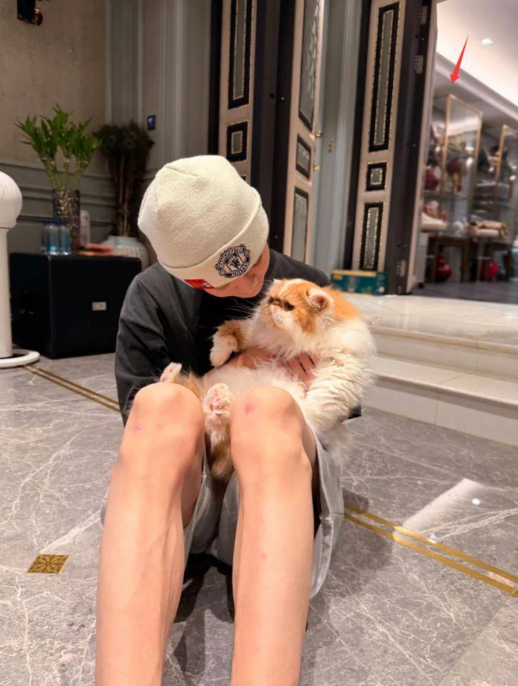 虽然鹿晗手里抱着的是他的宠物猫和狗,但大家都被豪华的装潢吸引了目光。门和墙纸的颜色呼应,门还镶了金色的边,装饰物里也有比较昂贵的孔雀羽毛。