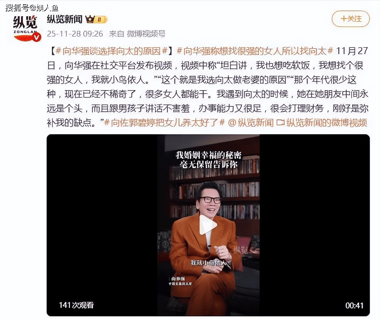 “找个女强人做老婆,然后其身边小鸟依人,吃软饭”,这可是无数男人梦寐以求的生活。让人意外的是,香港娱乐圈的大佬向华强因曾有这样的想法,并且坦白当年娶向太做老婆