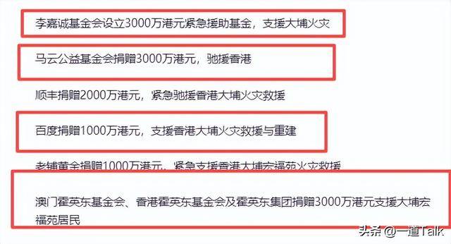 而就连李嘉诚、霍英东、马云等也是紧急设立了援助基金,支援大埔火灾。