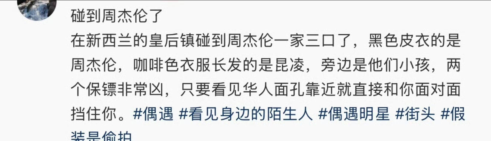 谁能想到,2025年的娱乐圈“旅游博主”天花板,居然是周杰伦?11月28日,多位网友在新西兰皇后镇活捉野生周董——他带着昆凌、儿子罗密欧开启家庭旅行,一家三