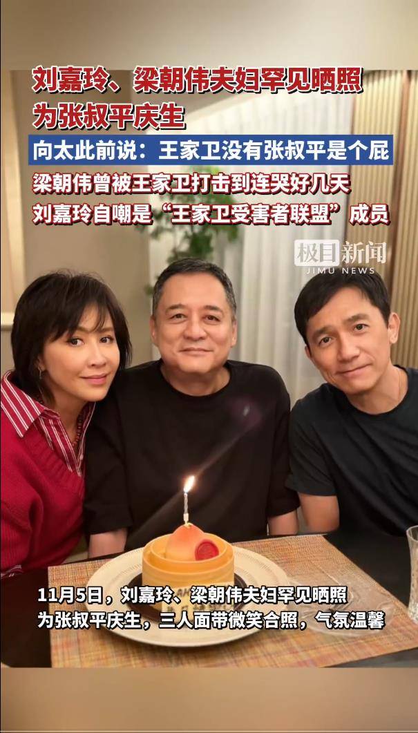 但值得注意的是,尽管嘴上吐槽,梁朝伟、刘嘉玲与王家卫、张叔平这群人,私下交情却始终在线。本月初,刘嘉玲与梁朝伟还一同为张叔平庆生,四人合照中笑容满面,气氛温馨——戏里是“受害者”,戏外仍是老朋友。