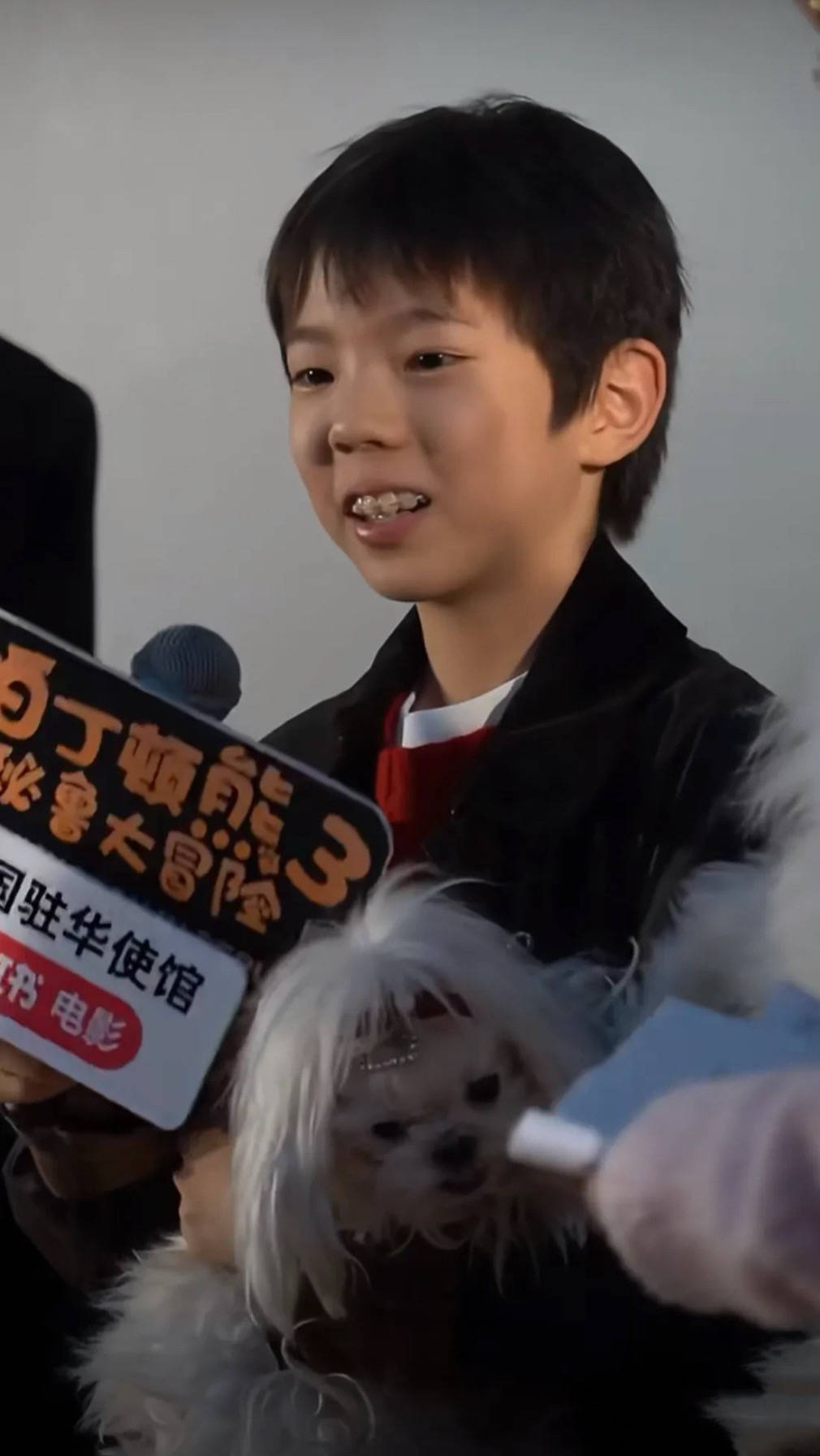 看得出来,嗯哼对自己的颜值并不自信。他戴着牙套的样子更加奇怪,显得嘴巴大大的、咧嘴小的时候眼睛小,脸颊突出,也许是太瘦的缘故吧。