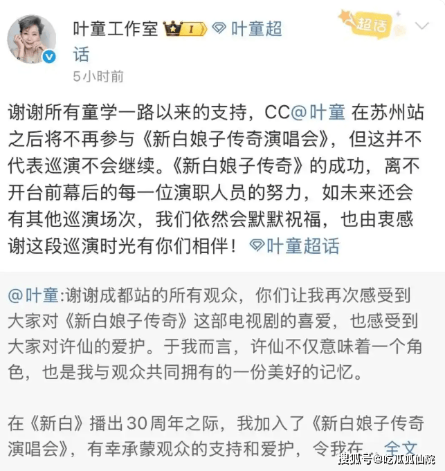 然而,叶童却做出了退出巡演的决定。在首谈原因时,她提到“让情怀沉淀”,这简短的几个字背后,蕴含着对艺术和粉丝深深的尊重。叶童或许深知,情怀如同美酒,需要时间的沉淀才能愈发香醇。当下的巡演,虽然能够满足粉丝们一时的期待,但她更希望以一种更完美、更具深度的方式呈现。过几年再会,意味着她将在这段时间里,精心打磨自己,从艺术创作到舞台表现,都进行全方位的提升,只为给粉丝带来一场更加震撼、更加难忘的视听盛宴。