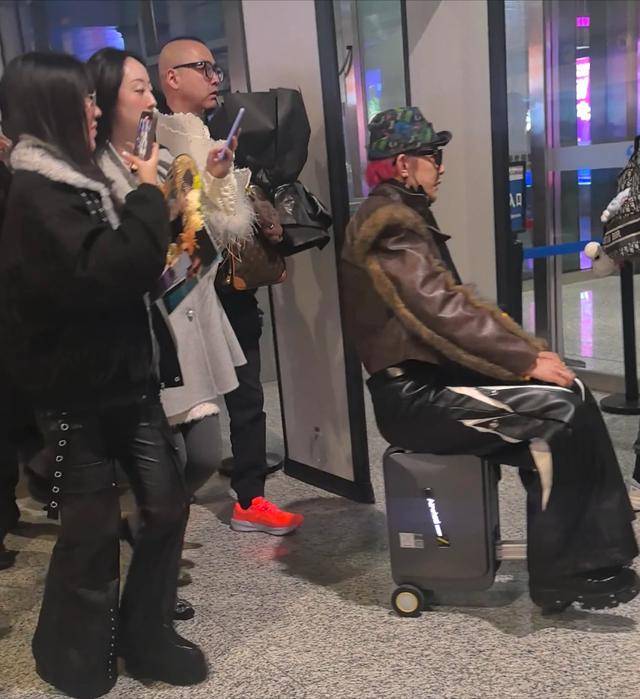 而且东哥一下车就坐上了行李箱,一点路都不想走,属实把膝盖呵护到了极致。
