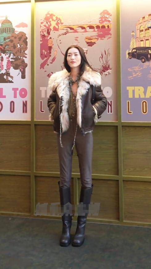 她站在舞台前,手时而插兜,时而扶一下毛领,偶尔侧头跟工作人员说话,表现的非常自然大气。