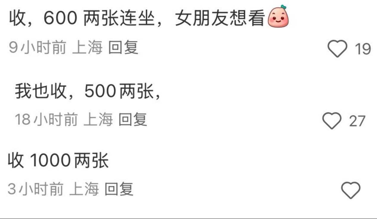 有网友在社交媒体上求本周末ULTRA 4DX厅的票,评论区排满了同样求票的观众——有人花500-600元收两张连坐票,想和女朋友一起看;甚至有人1000元收购两张票。