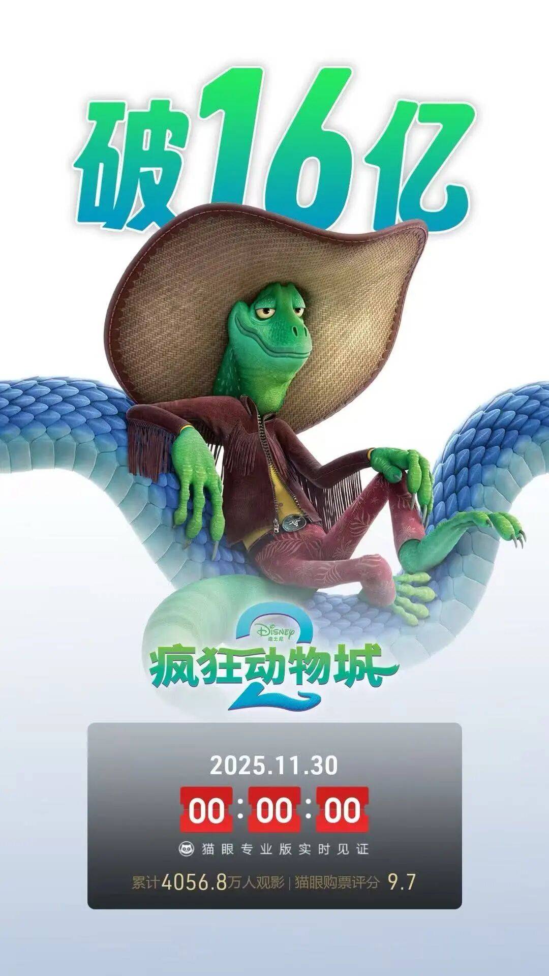 11月26日,《疯狂动物城2》开画斩获2.11亿元,登顶中国影史进口动画单日票房冠军。
