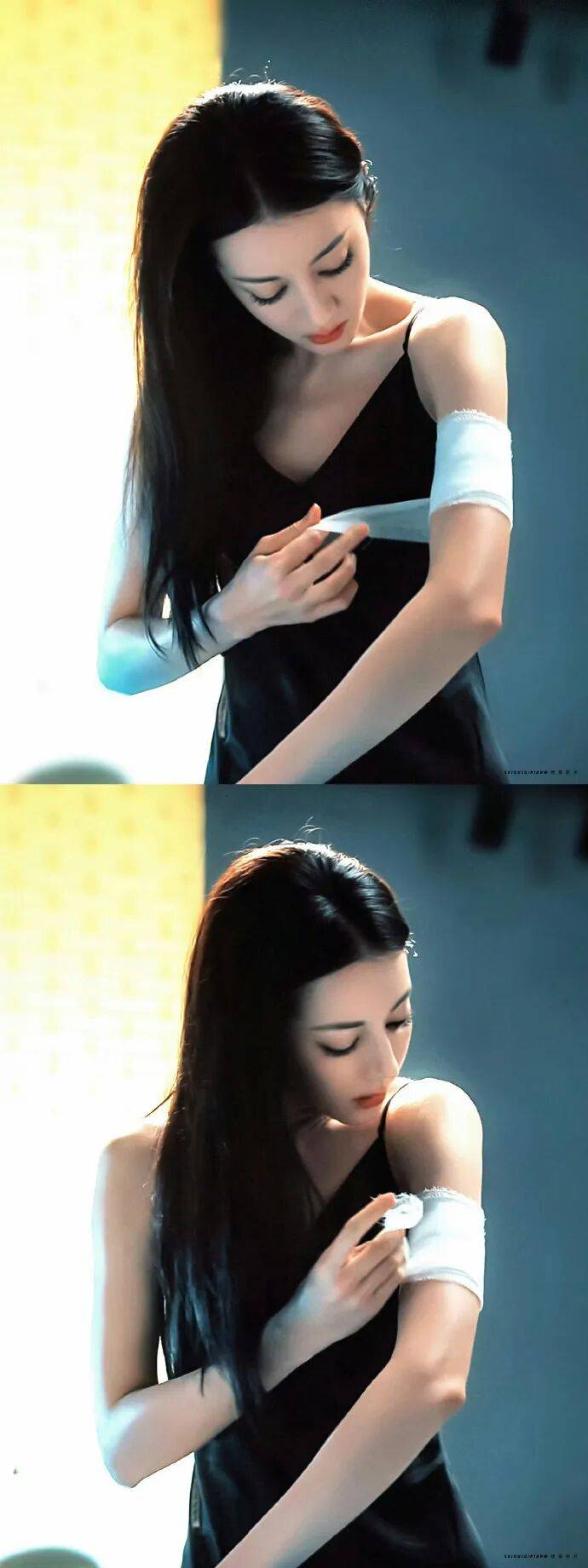 而且迪丽热巴穿着黑色小背心,手臂缠着绷带,露出自己的香肩和事业线,曼妙的身材曲线,更是性感撩人!