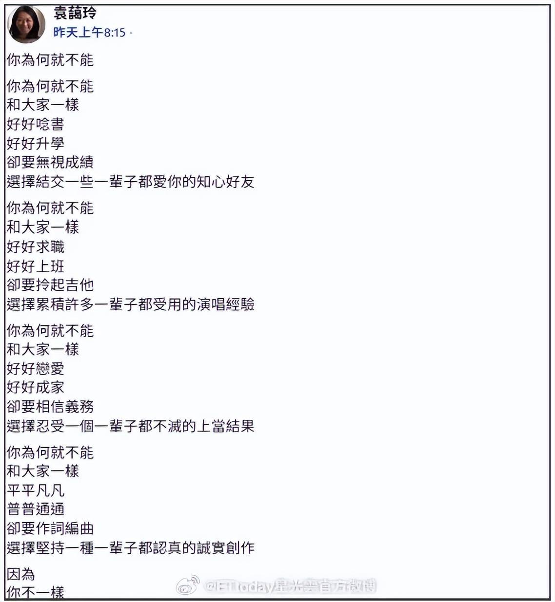 另外,袁惟仁儿子已经入行到摄影师了,小S复工搭档蔡康永的大片就是由他拍摄,起点很高。女儿则处于无业状态,也没打算入行。至于袁惟仁,在57岁生日当天,远在英国的姐姐发文回忆他为音乐叛逆的一生,唏嘘不已。