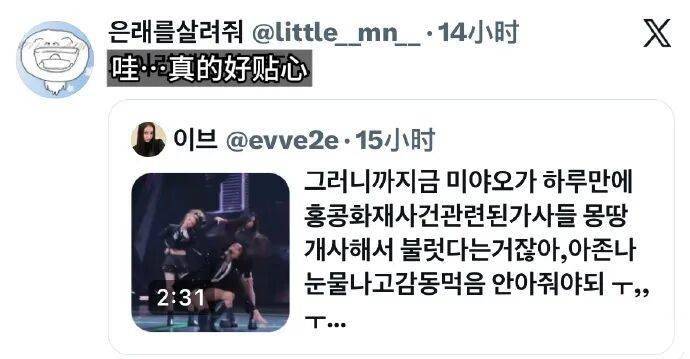 这场“默契应变”的背后,折射出新一代偶像对公共事件的敏锐感知。MEOVV和i-dle均未提前宣传改动细节,却在登台后以高度统一的执行完成了“无声的尊重”。有娱乐评论人分析:“从改歌词到调编舞,看似简单的操作实则需要团队快速决策、反复排练,她们的职业素养值得肯定。”