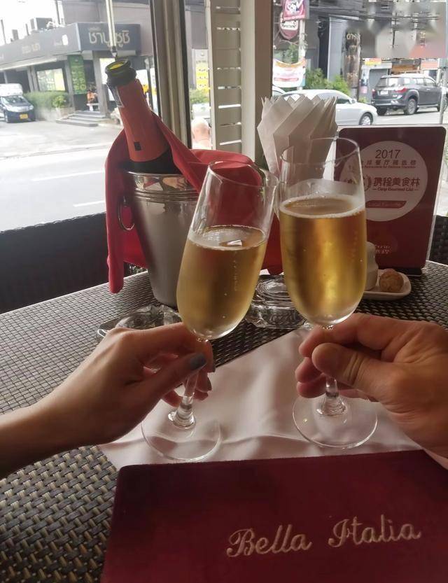 另外一张是他们夫妻俩对饮的合影,各自端着一杯香槟,然后碰杯。虽然两人没有出镜,但可以感受到那种满满的幸福感。