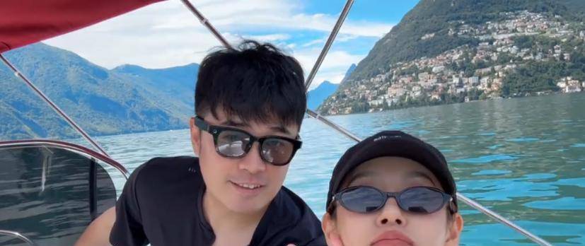 视频开场便是日内瓦湖的醉人风光,晴空万里下湖水翠绿如翡翠。陈赫身着休闲黑T恤,张子萱依偎在他肩头,两人面贴面绽放笑颜,浓情蜜意几乎要满溢而出。