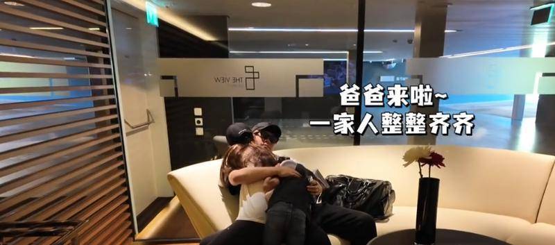在酒店休憩时,陈赫慵懒地靠在米白色沙发上,张子萱欢快地扑进他怀里,两人相拥翻滚笑作一团。画面标注着"爸爸来啦~全家团聚"的字样,这哪里是普通旅行,分明是幸福生活的真情流露。