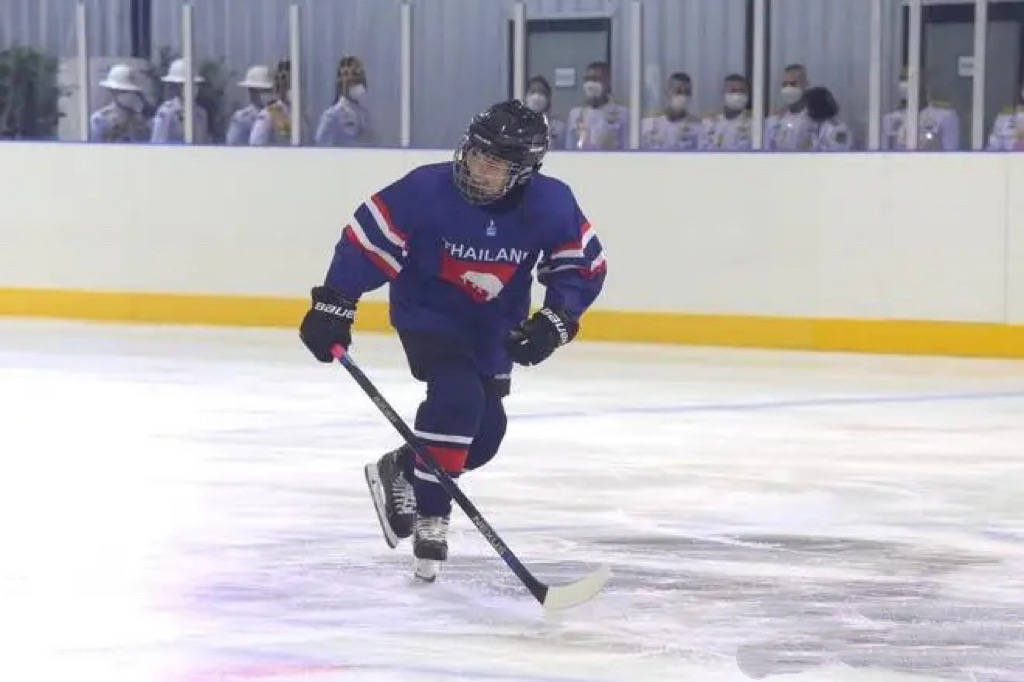 打冰球时候的苏提达,虽然带着防具,但依然能感受到那股流畅。她身体的平衡性很强、在冰面上自由的滑行,挥杆全垒打帅极了!