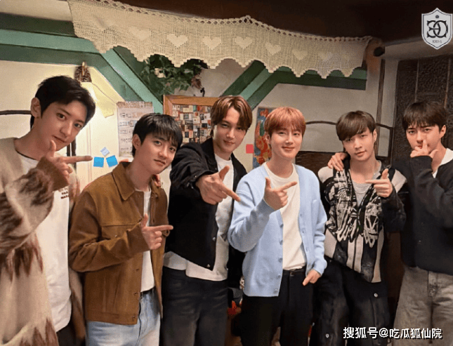 照片里,成员们各自展现出独特的魅力。金俊勉作为队长,稳重成熟的气质尽显,脸上带着温和的笑容,仿佛在无声地传达着团队的凝聚力。朴灿烈那标志性的灿烂笑容依旧极具感染力,高挑的身材与独特的时尚感,让他在合照中格外亮眼。都暻秀则带着内敛而深邃的眼神,低调却散发着不容忽视的气场。金钟仁凭借与生俱来的舞台王者风范,即使只是安静地站着,也仿佛自带光芒。吴世勋一如既往的帅气,精致的五官与潮流的穿搭,彰显出他的时尚品味。而张艺兴的出现更是给粉丝们带来巨大的惊喜,他以亲切的笑容和独特的气质,融入其中,让整个画面更加完整。
