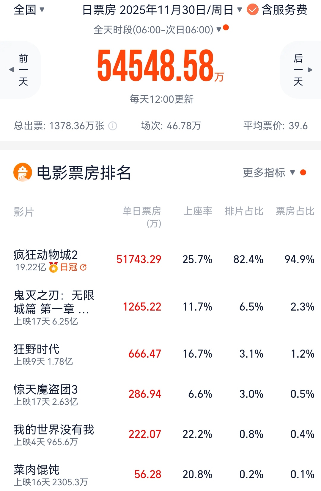 按此走势,猫眼专业版给《疯狂动物城2》的预测总票房是42.5亿元,灯塔专业版的预测是38.4亿元,将排在年度票房榜第二,影史票房榜前十二。
