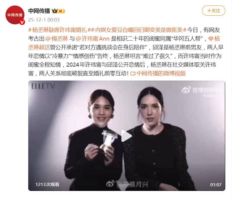 邱泽与许玮甯的婚礼本是娱乐圈一桩喜事,却因一个人的缺席掀起波澜——许玮甯相识二十年的闺蜜杨丞琳,并未现身。台媒甚至专门报道了这场“缺席”,让一段