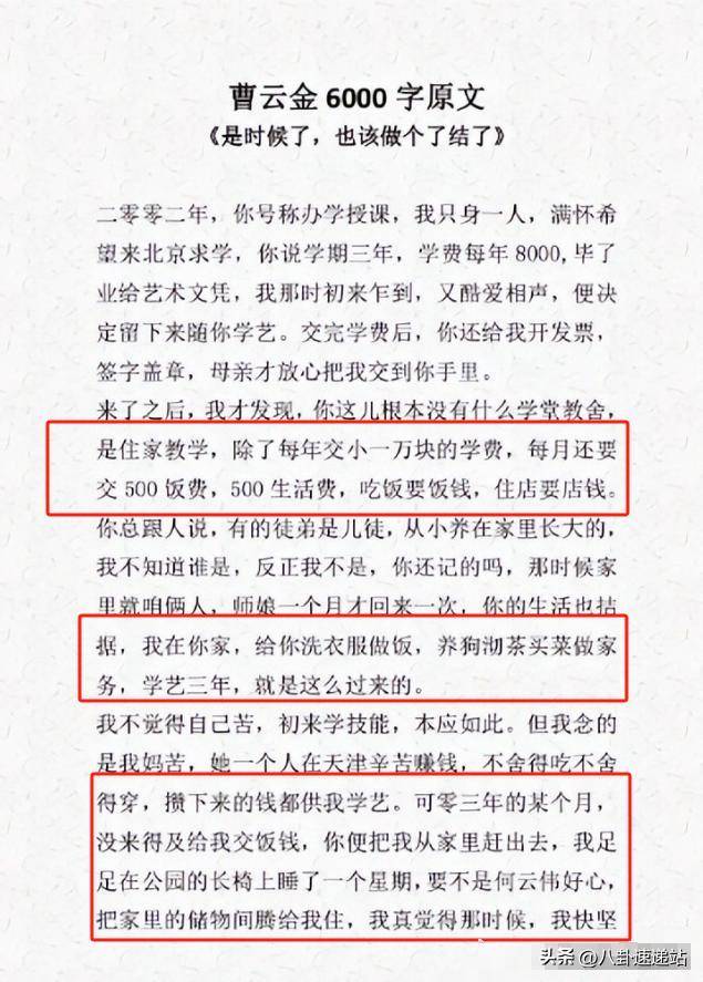 老郭当年和徒弟曹云金闹掰,这件事闹得非常大,当年曹云金16岁的时候就跟了老郭,他表示自己在那里不光要交学费、生活费,