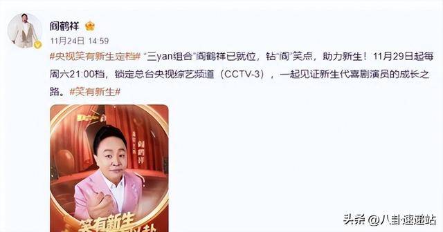 在11月24号,他在社交平台公布了要主持央视节目《笑有新生》的消息,下面还配了一张海报图。