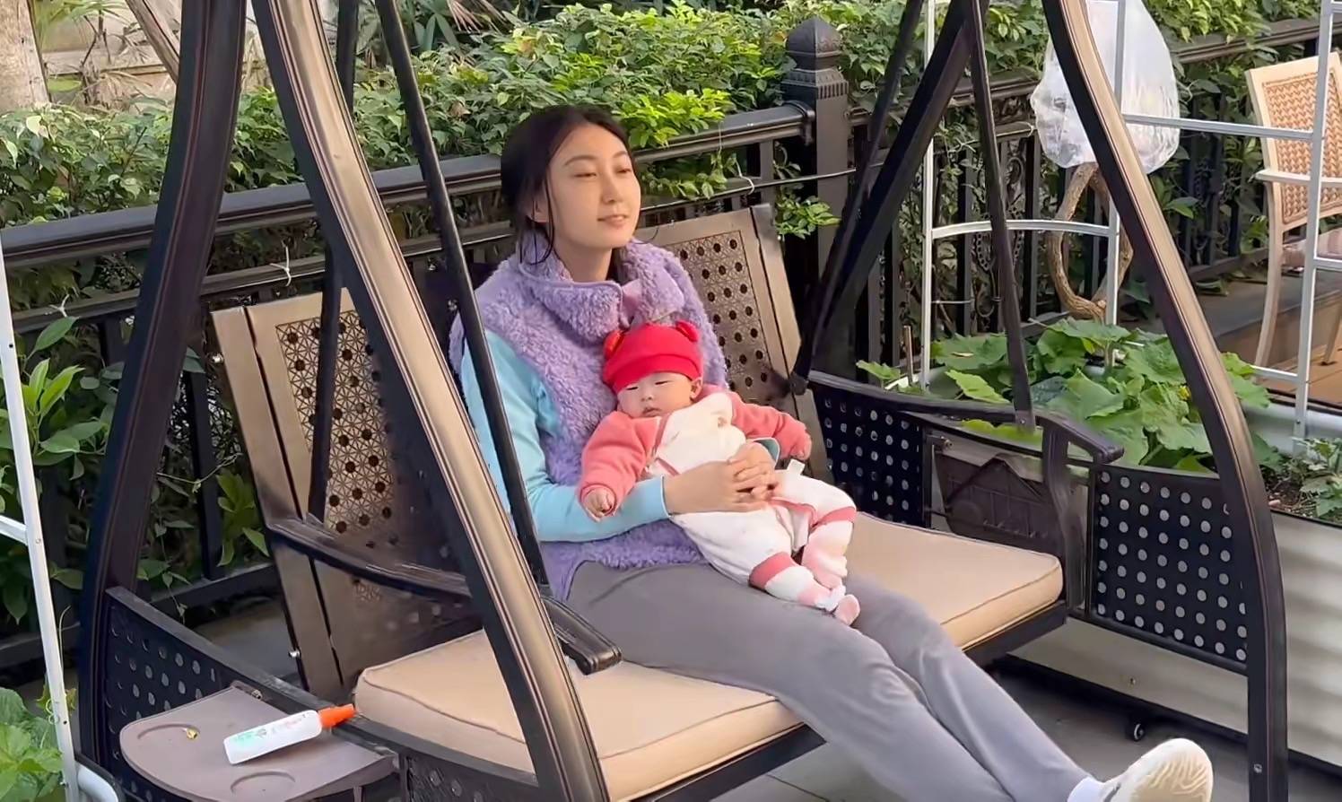 水亦诗基本没有化妆时间,也很少精心打扮自己的了。上午十点钟左右的时候,趁着太阳正好她就会带着女儿下楼荡秋千、晒太阳。