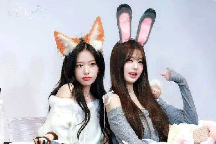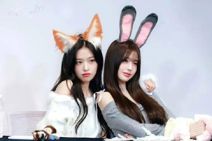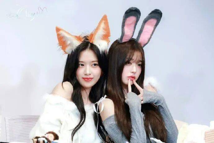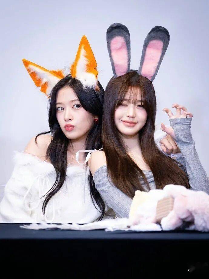 争议的根源,深植于粉丝通过“动物塑”对偶像进行的解构。张元英的“兔塑”因其幼态脸庞与纯真气质早已深入人心,兔耳造型无疑强化了这一固有标签。而安宥真则陷入了“狐狗双塑”的矛盾漩涡:她挑眉时的笑颜被指充满狐系的魅惑感,但其直率开朗的性格又无比贴合狗系的元气形象。粉丝们正是通过这种动物塑的叙事,将复杂的现实关系简化为“捕食者与猎物”的浪漫想象。