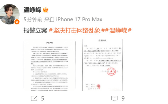 近日,网传温峥嵘用AI卖假货、卖面膜出事把锅推给AI等引热议。12月1日,温峥嵘发文称已报警立案,并晒出受案回执。