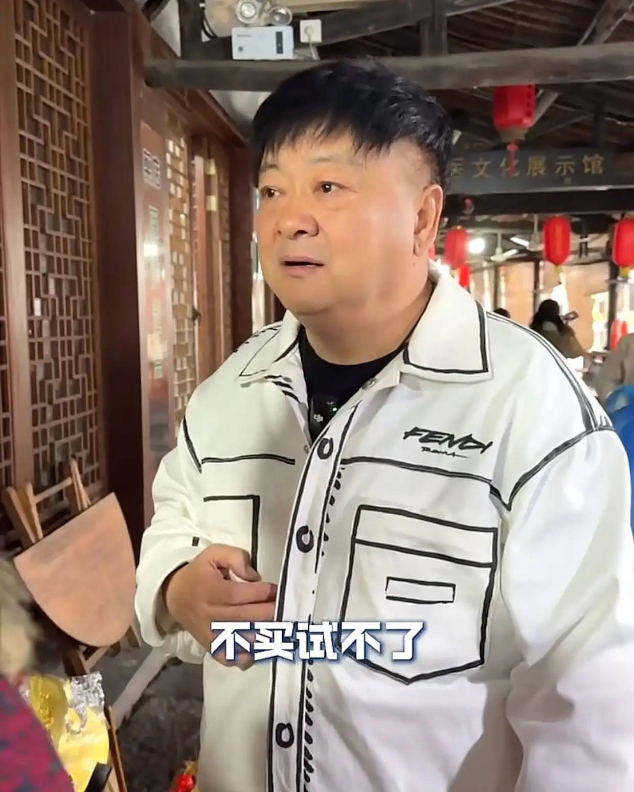 洪剑涛现身浙江绍兴的安昌古镇旅游,自然要感受一下当地的民俗塔色。他手里拿着油纸伞、手提袋里还装着纪念品,礼貌地询问摊主能不能试戴则个帽子。