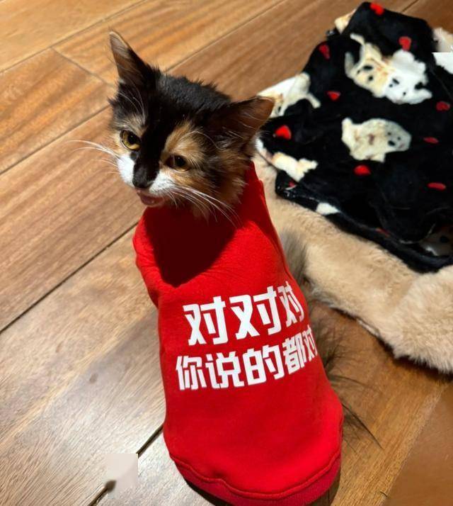 她还分享了一组聚会照片。其中一张是可爱的猫咪照,猫咪穿着一件红色衣服,上面印有“对对对你说的都对”字样,一看就很符合姚晨一贯的风格。