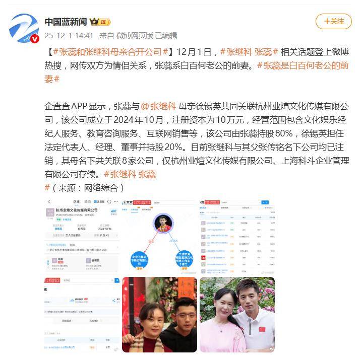 除了情感上的稳定联结,张继科与张蕊在事业上也早已深度绑定。公开信息显示,张蕊与张继科的母亲徐锡英共同持股一家名为“杭州业煊文化传媒有限公司”的企业。其中,张蕊持有80%的股份,是绝对的大股东,而徐锡英则担任公司的法定代表人。这一商业上的紧密合作,无疑为两人长达五年的稳定关系增添了坚实的注脚,也让外界猜测,这或许早已超越了简单的恋爱范畴。