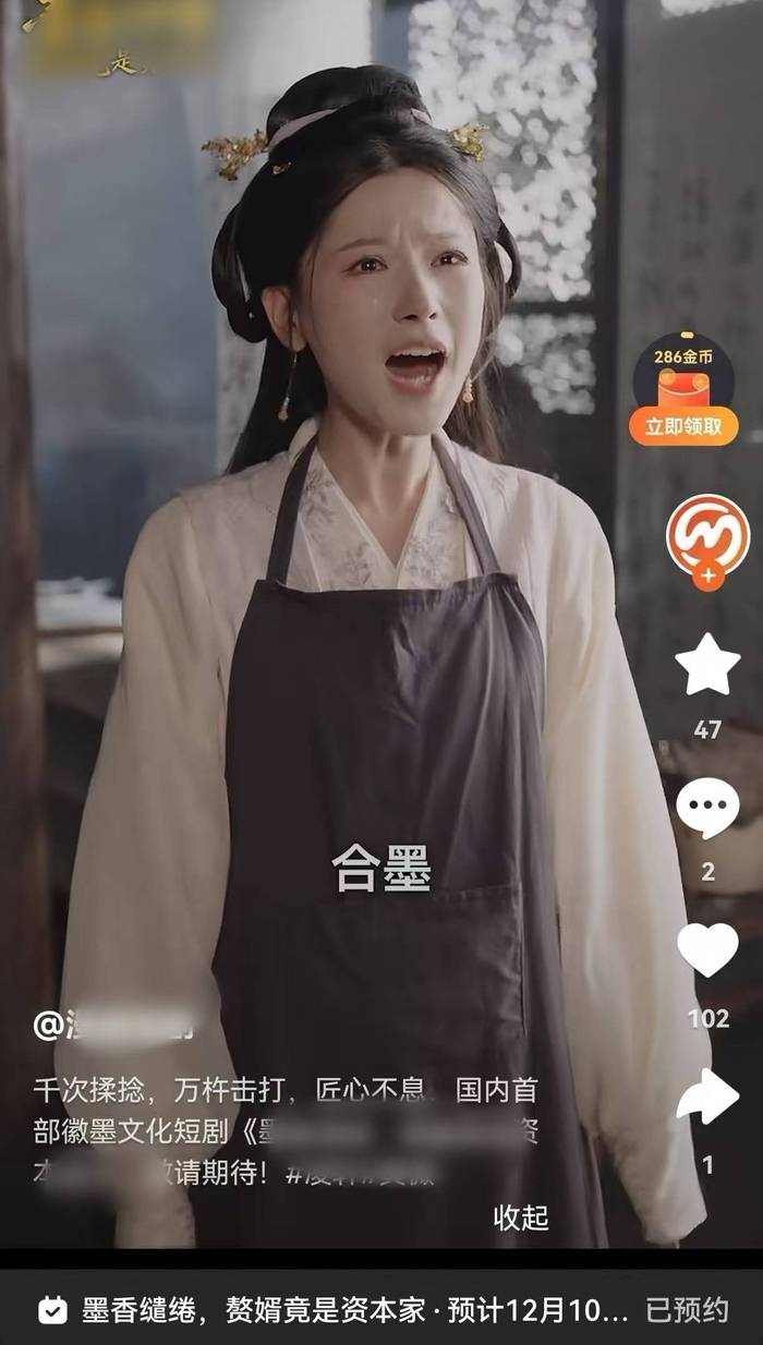 而短剧相关从业者分析,跟风短剧的布景为泡沫喷漆材质,徽墨道具疑似煤块仿制,演员手部无制墨痕迹,结合短剧行业“小团队、快周转”的普遍特征,认为该剧制作周期最多不超过一周、成本约在几十万。