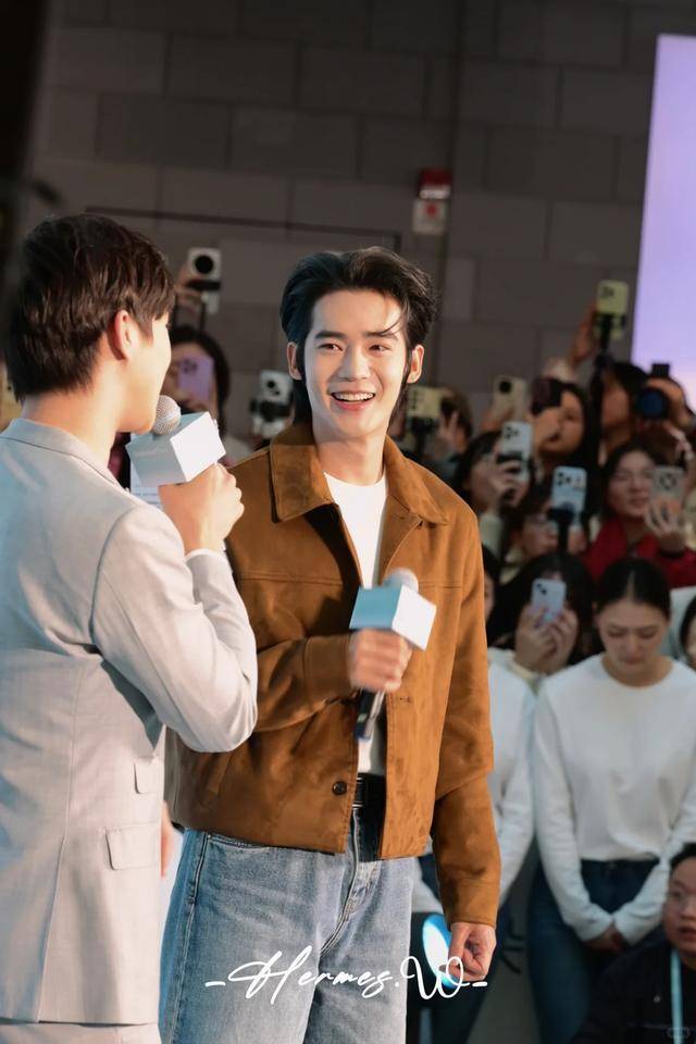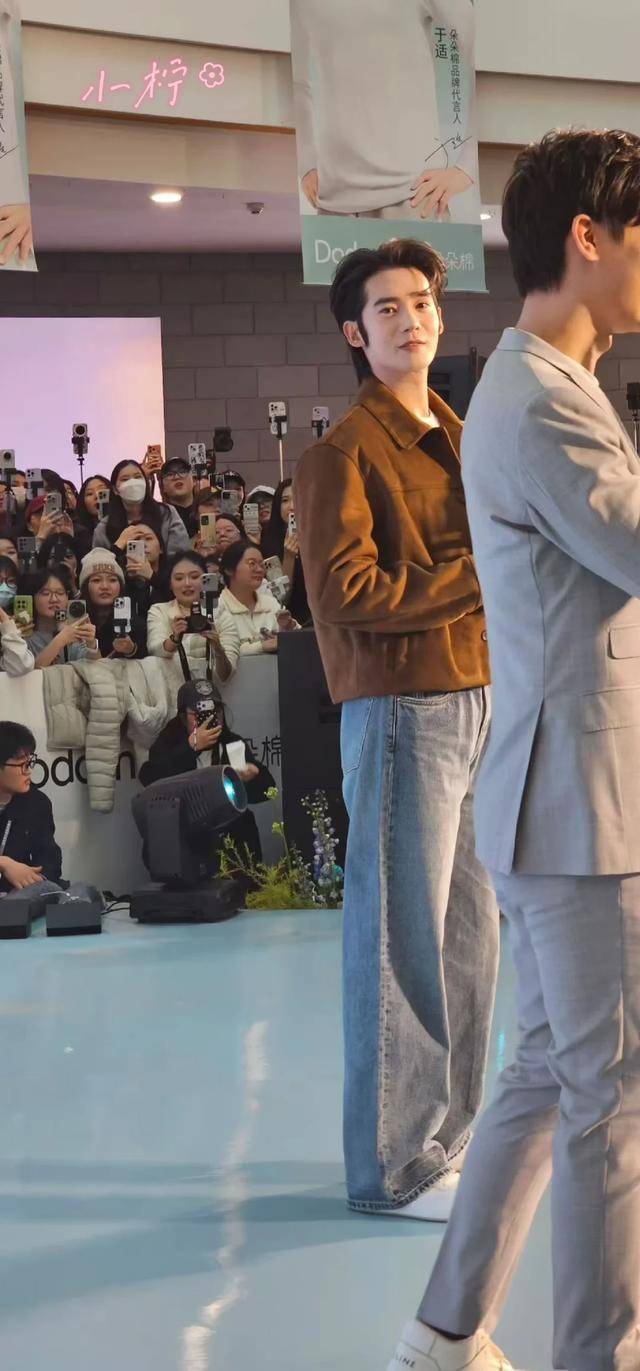 整个人瘦高挺拔,腿长得离谱,走路带风,视频里,粉丝尖叫他还回头腼腆笑,那一刻,真的少年感拉满。