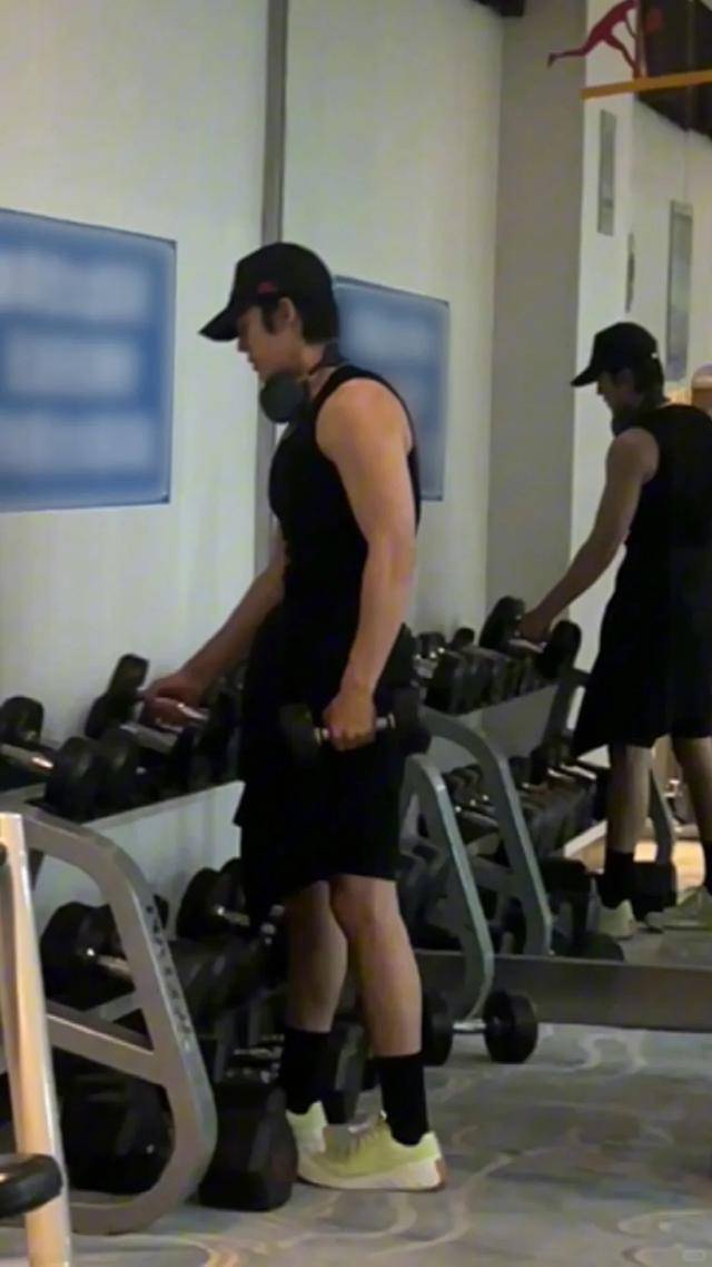 甚至有人在健身房偶遇他,他穿着黑背心,肩宽腰窄,人鱼线清晰可见,